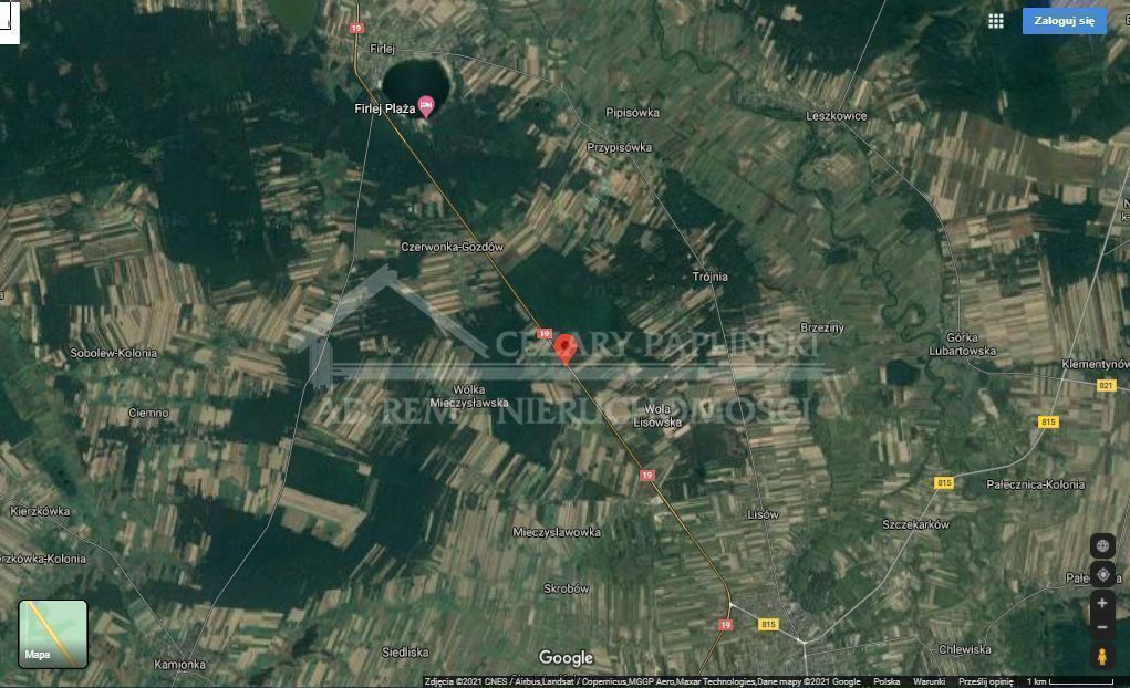 Działka rolna o powierzchni 13800 mkw. (1,38 ha) położona w Woli Lisowskiej, gmina Lubartów.Teren nieuzbrojony za wyjątkiem prądu, dojazd do nieruchomości z drogi głównej S 19. W najbliższej okolicy - jezioro, pola i las.